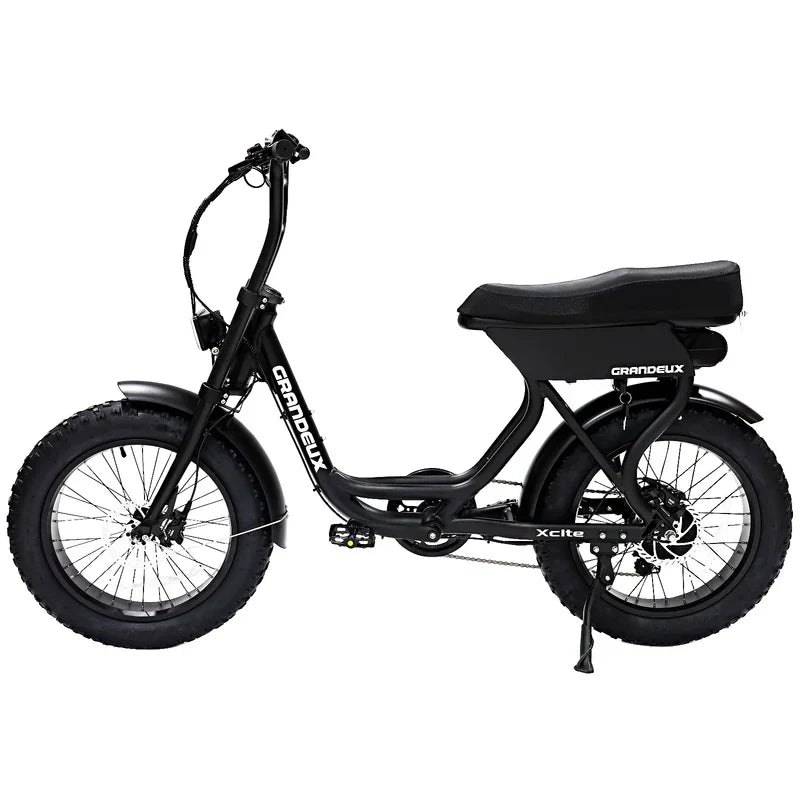 De Grandeux Xcite – Zwart is een veelzijdige fatbike die kracht, comfort en moderne techniek combineert. Dankzij het lichte aluminium frame, de betrouwbare Bafang-motor en hydraulische schijfremmen is deze fiets geschikt voor zowel stadsritten als avontuurlijke tochten. Met een actieradius tot circa 80 km (bij gemiddelde ondersteuning) biedt de Xcite je de vrijheid om langere trajecten aan te pakken.