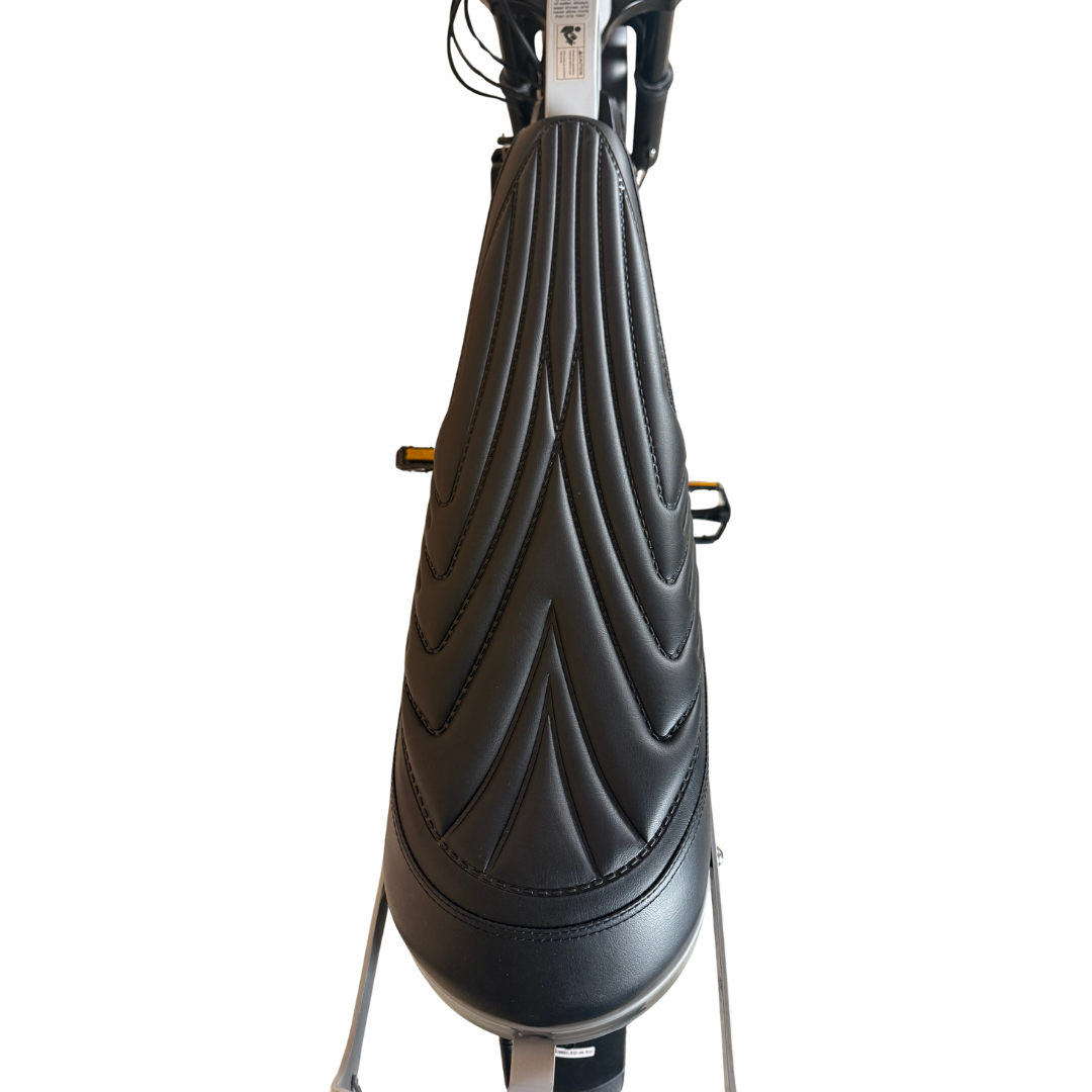 Met de 16x4,5-inch banden biedt de V20 Mini uitstekende grip en stabiliteit op diverse ondergronden zoals asfalt, gras en zand. De luchtgeveerde voorvork absorbeert schokken effectief, waardoor je ook op ruw terrein comfortabel rijdt. Het tweepersoonszadel met stijlvol streepdesign zorgt voor extra comfort, zelfs tijdens langere ritten.